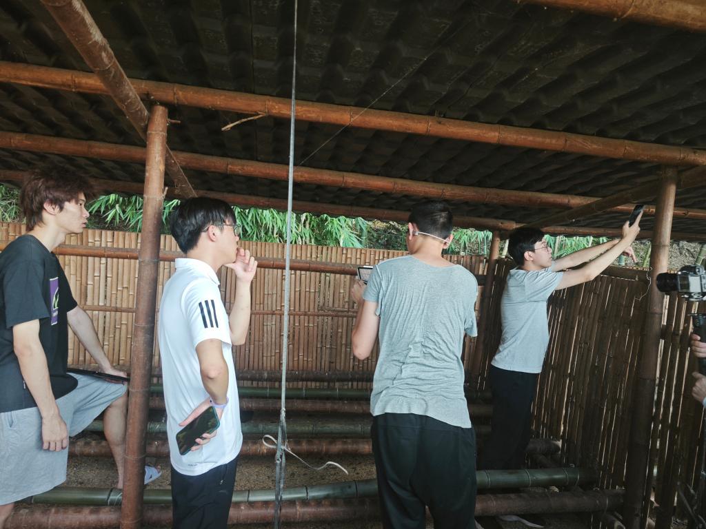 深圳大学腾讯班的学生在乌骨鸡鸡舍内研究部署AI系统。(程艺辉 摄)