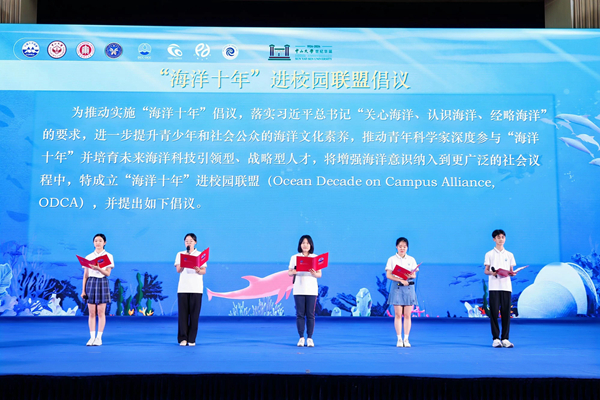 “我们坚信,通过‘海洋十年’进校园联盟的努力,大家万众一心,将会在青少年中掀起⼀股关心海洋、热爱海洋的新浪潮,增强社会对海洋的认知,为构建⼀个‘我们所希望的海洋’贡献力量。”大家共同倡议。