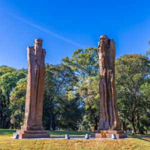 “南美明珠”乌拉圭首都蒙得维的亚市中心的巴特列公园近日迎来了两位“不用护照”的中国友人。他们,一个浑然高古,一个飘逸悠游,高7.8米、总重6.6吨,伫立于天地之间,以中正祥和的儒雅气度和天人合一的怡然神韵,讲述着万里之遥的中国故事。