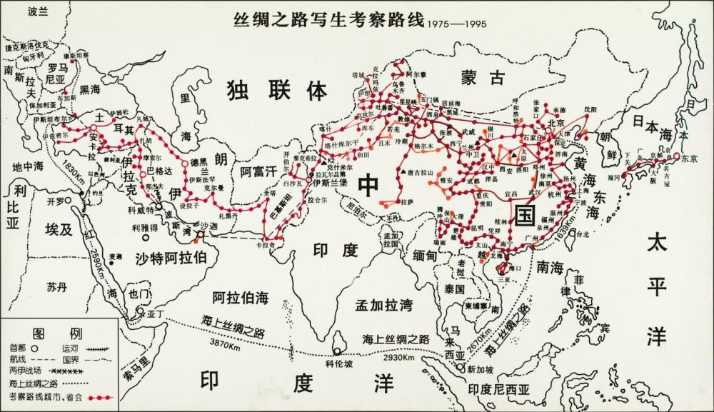 耿玉琨和赵以雄丝绸之路写生考察路线图。受访者供图