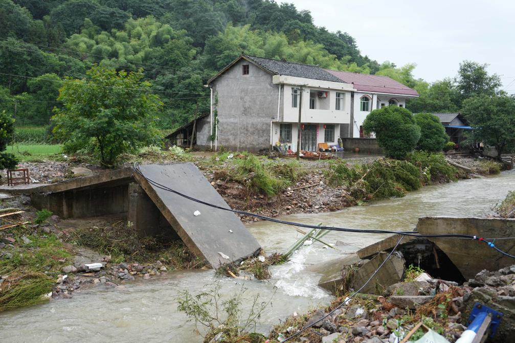 夷望溪镇一处被大雨冲垮的桥梁。新华社记者 薛宇舸 摄