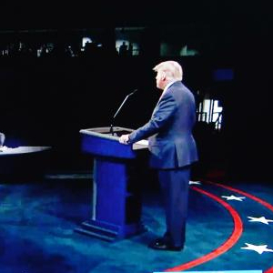 2020年10月22日在美国弗吉尼亚州阿灵顿拍摄的视频画面显示,时任美国总统特朗普(右)与时任民主党总统候选人拜登(左)在田纳西州纳什维尔市参加最后一场总统候选人电视辩论。新华社记者刘杰摄