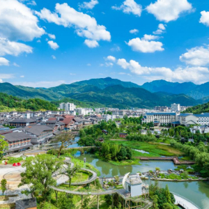 蓝天白云下的江西宜春温汤镇。(陈旅 摄)