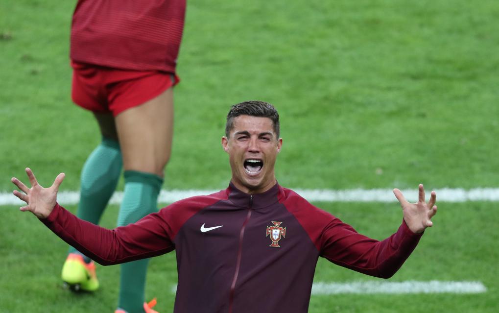 2016年7月10日,葡萄牙队球员克·罗纳尔多在赛后庆祝夺冠。当日,在法国巴黎进行的2016年欧洲足球锦标赛决赛中,葡萄牙队以1比0战胜法国队,首次夺得欧锦赛冠军。新华社记者 白雪飞 摄