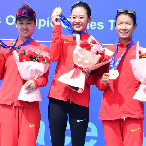 3月3日,包揽女子20公里竞走冠亚季军的中国选手马振霞(中)、杨家玉(左)和刘虹在颁奖仪式上。当日,2024年世界田联竞走巡回赛暨全国竞走大奖赛(第1站)暨巴黎奥运会选拔赛(第1站)在江苏省太仓市举行。新华社发(计海新摄)