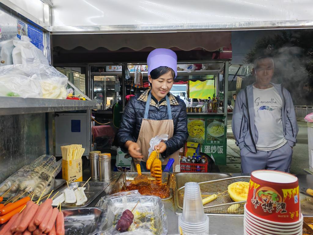中河乡村民马从莲在烧烤摊前忙碌。新华社记者 马思嘉 摄