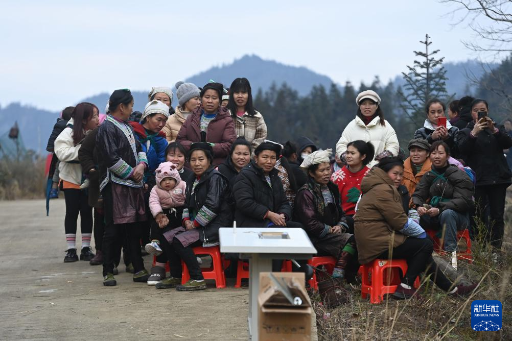 参加喜宴的乌英屯村民们在一起聊天(2024年1月27日摄)。