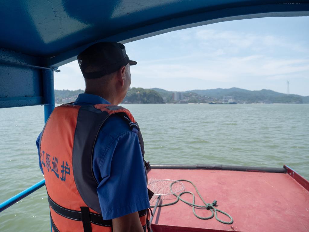 7月23日,江西省湖口县江豚协助巡护队队员正在瞭望前方水面。新华社记者 郭杰文 摄