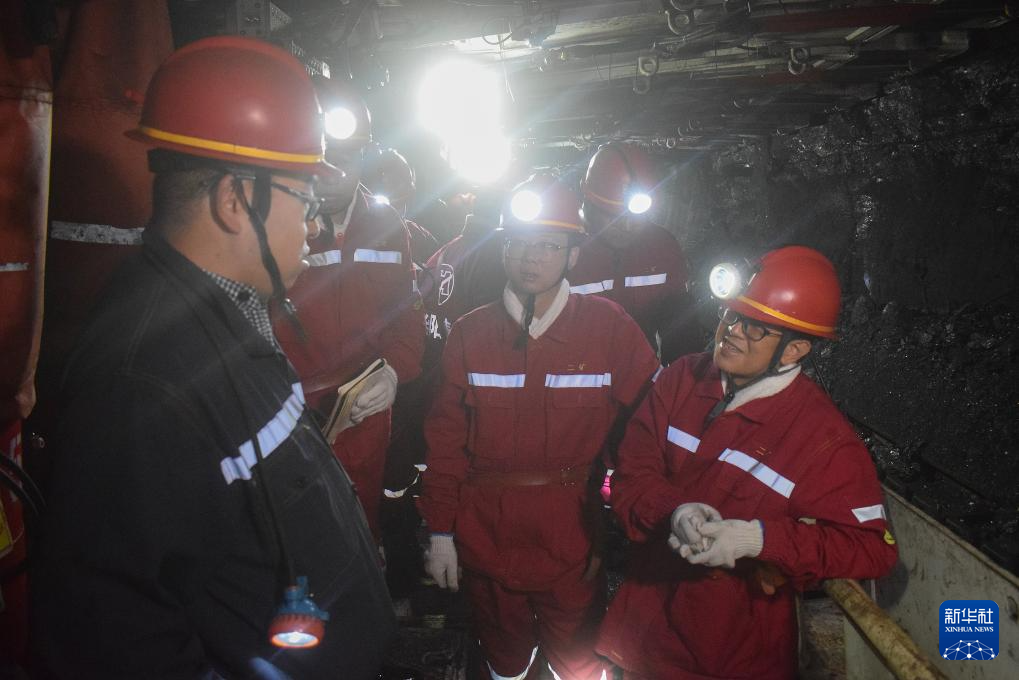 8月1日,新华社记者在井下采访华阳二矿的矿工。新华社记者 李鑫 摄