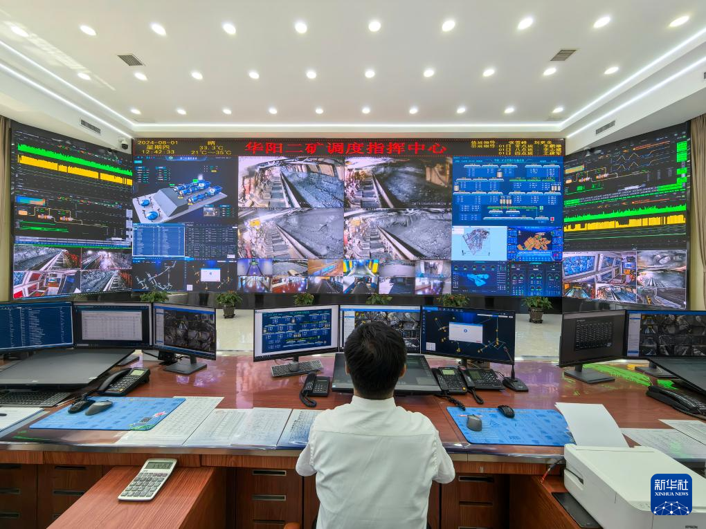 这是华阳二矿生产调度指挥中心(8月1日摄)。新华社记者 李鑫 摄