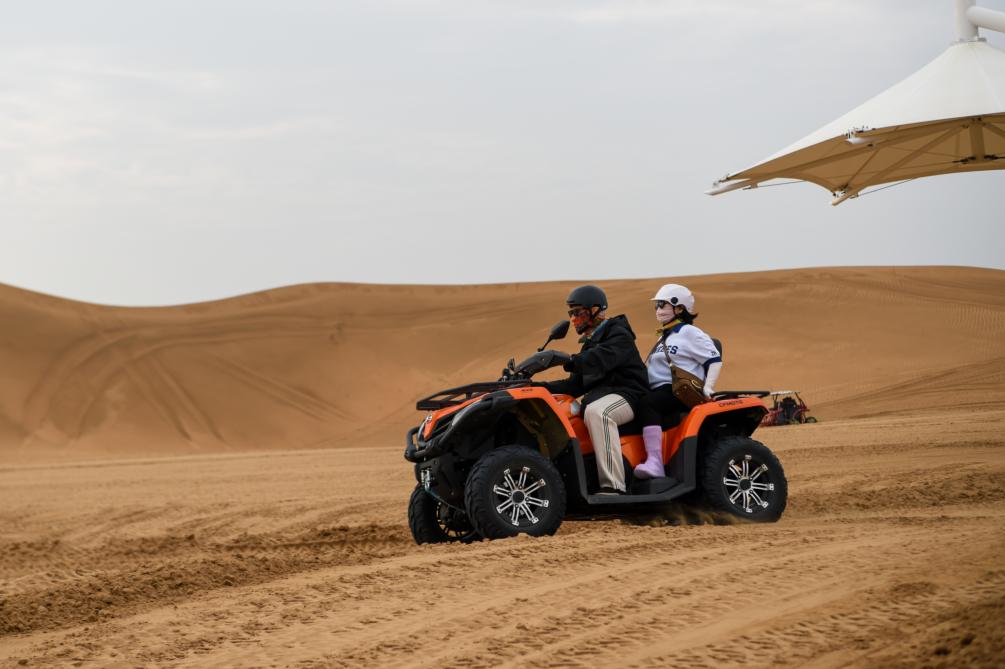 游客在银肯塔拉景区体验沙漠摩托。