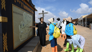 李方(右二)在银肯塔拉景区引导游客。