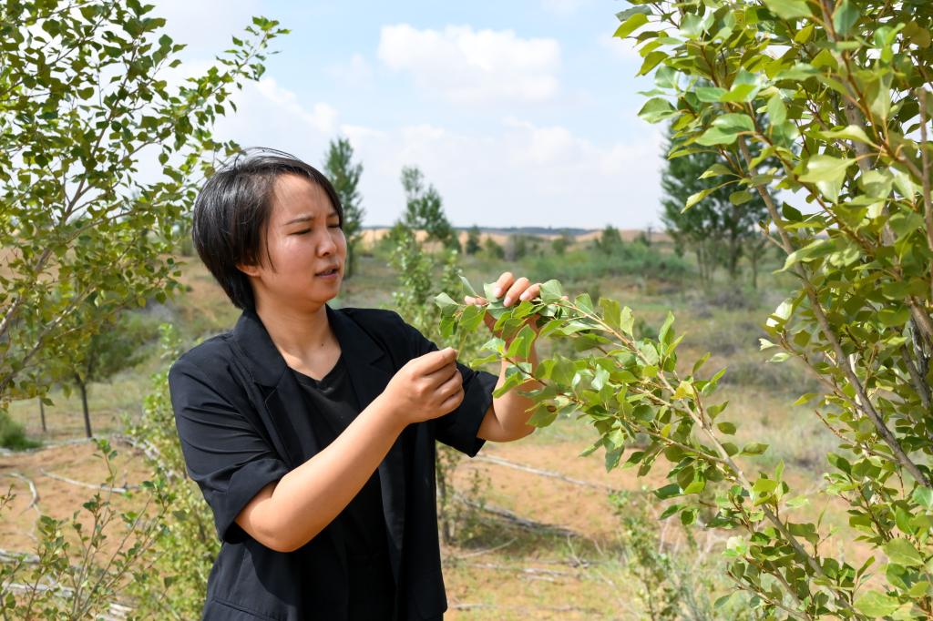 李方在银肯塔拉景区查看树木生长情况。