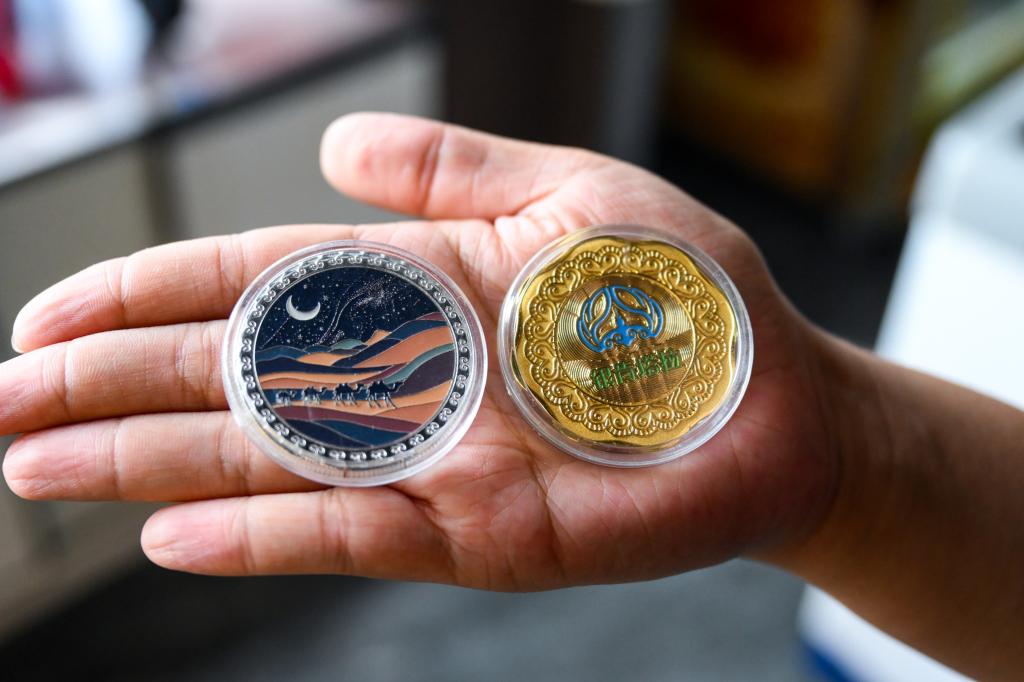 李方在展示银肯塔拉景区的文创产品。