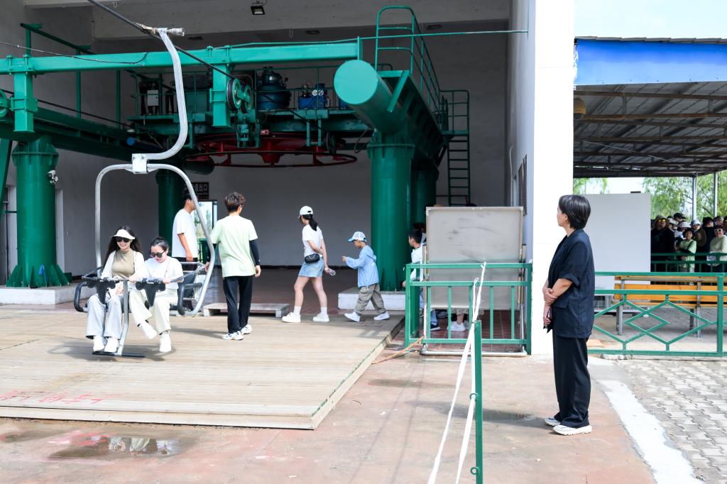 李方(右)在银肯塔拉景区查看索道运行情况。