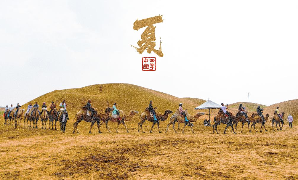 游客在银肯塔拉景区骑骆驼(无人机照片)。