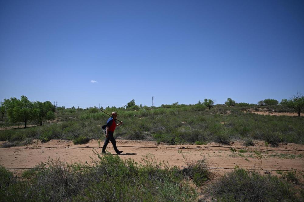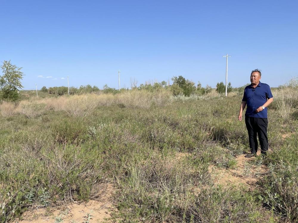 34岁的敖日格乐家住吉日嘎朗图镇格更召嘎查,2012年大学毕业后返乡投身库布其沙漠治理。十余年来,敖日格乐从青涩的大学生成长为“治沙老手”。最近趁着雨水多,敖日格乐抓抢时间种杨柴、插沙柳。作为嘎查的新一辈治沙带头人,敖日格乐说:“从父辈手中接过治沙接力棒,我要继续向沙漠要绿色。”