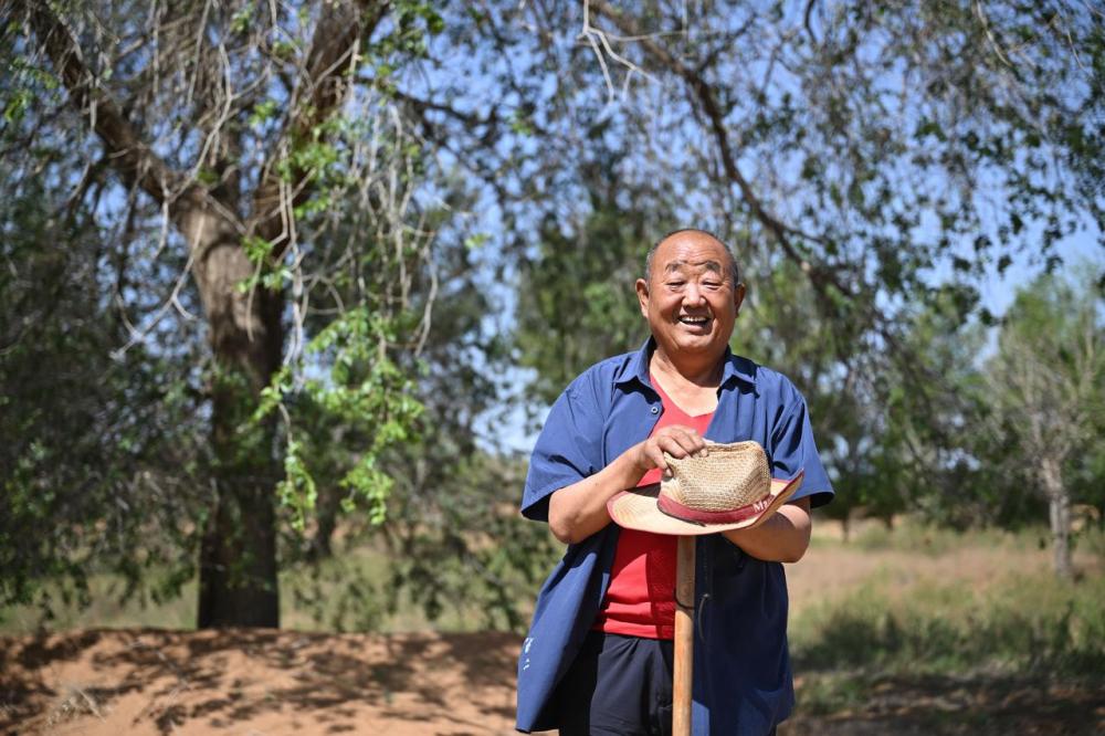 “哎呀,我跟你说,真有成就感!”他声音流露出明显的兴奋,“你看着树种起来,把沙一块块治住,那心情可不一样了!我觉得我这辈子行了,这就是我最大的贡献。”