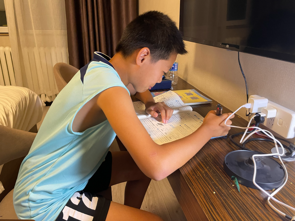 走进大连龙卷风队入住的宾馆,耳边不时传来孩子们大声朗读英语的声音。孩子们正在利用休息时间温习功课。主教练刘全昆介绍,孩子们在晚上都会自觉地投入学习,有的还自己带来台灯,小小的桌子上铺满了书本和文具。
