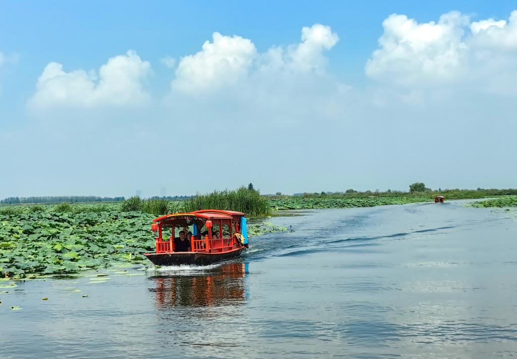 游船在白洋淀上航行。新华社记者 齐雷杰 摄