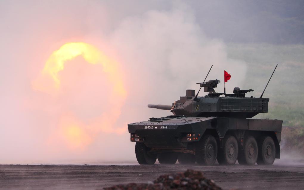 2018年8月26日,日本陆上自卫队在静冈县御殿场市东富士演习场举行2018年富士综合火力演习。新华社记者杜潇逸摄