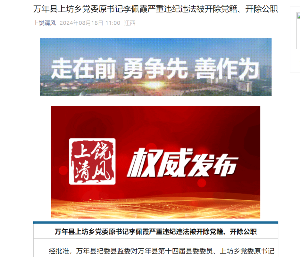 经批准,万年县纪委县监委对万年县第十四届县委委员、上坊乡党委原书记李佩霞涉嫌严重违纪违法问题进行了立案审查调查。