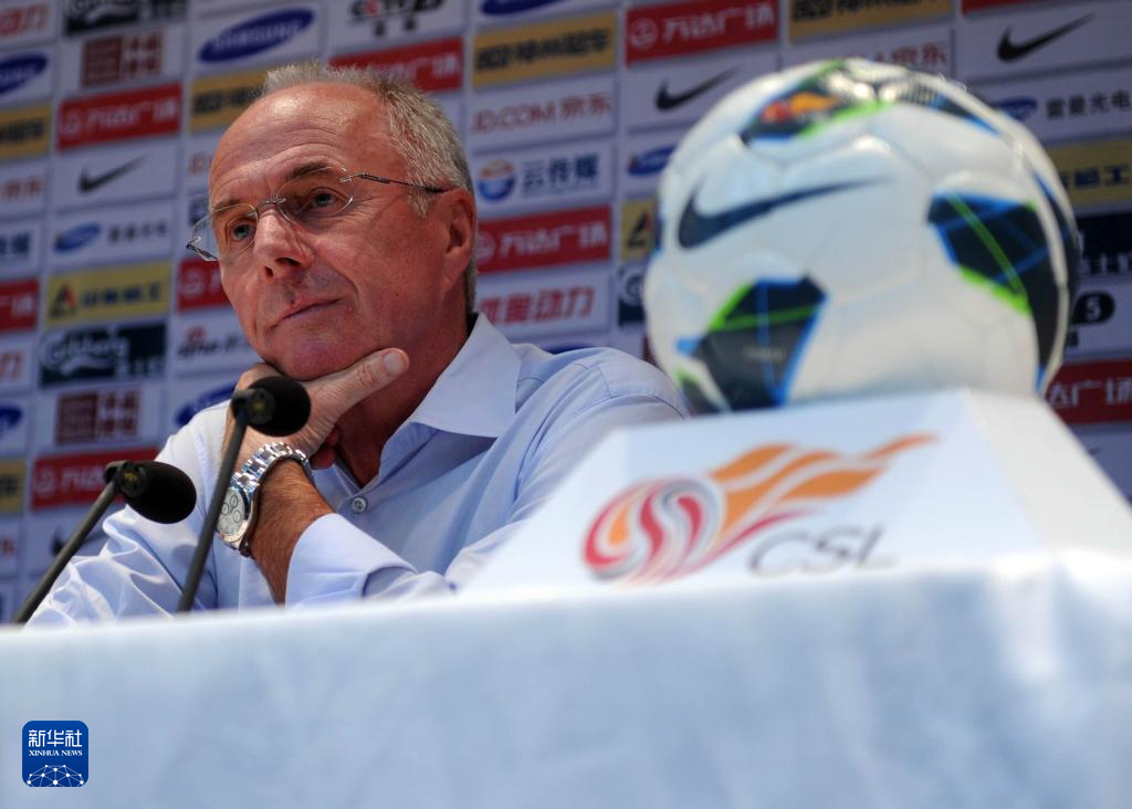 这是时任广州富力队主教练斯文-戈兰·埃里克森在2013赛季中超联赛第14轮广州富力队主场对阵天津泰达队的比赛前(2013年6月26日摄)。新华社记者 刘大伟 摄