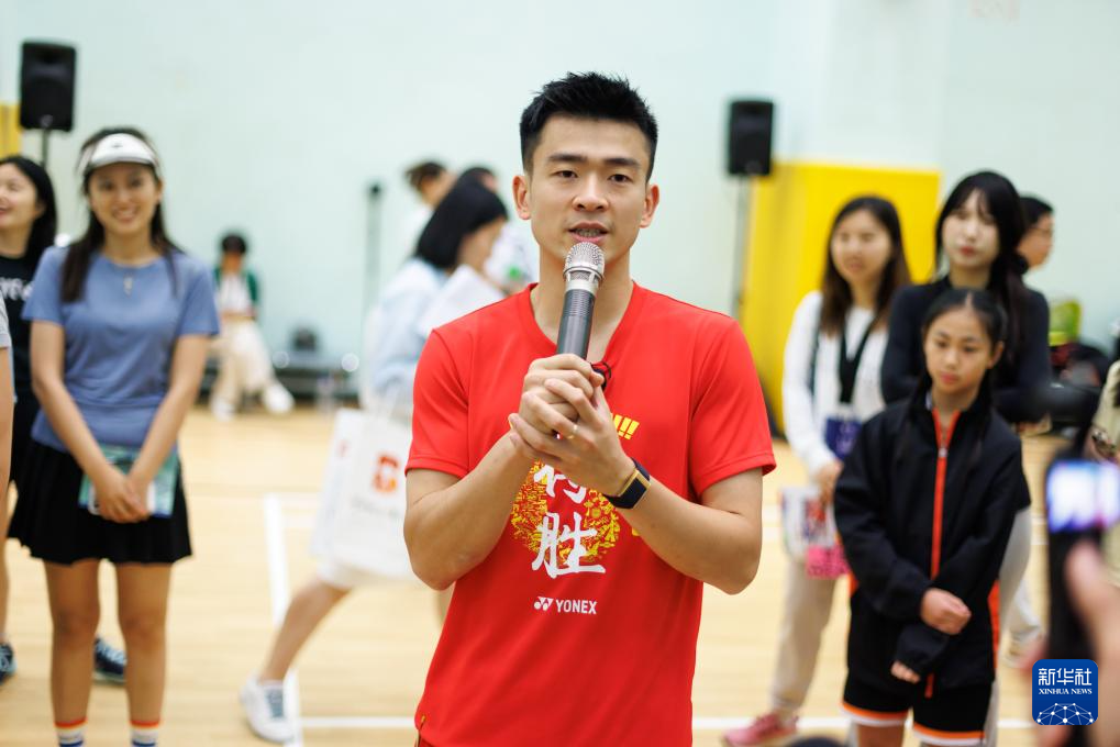 8月30日,在香港南华体育会,羽毛球运动员郑思维寄语香港青少年。新华社发(紫荆文化集团供图)