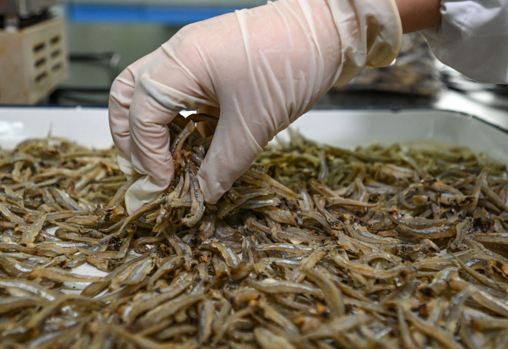 2023年6月28日,在湖南省岳阳市平江高新技术产业园,劲仔食品平江生产基地的化验员在实验室对进口鳀鱼进行水分检测。2023年6月,中国首次进口的肯尼亚野生鳀鱼产品在第三届中非经贸博览会上亮相。近年来非洲对华农产品出口增长迅速。
