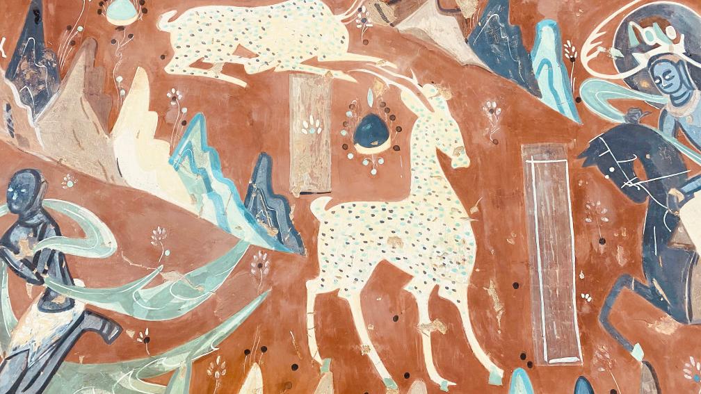 这是张平安绘制的《九色鹿王本生图》局部。新华社发