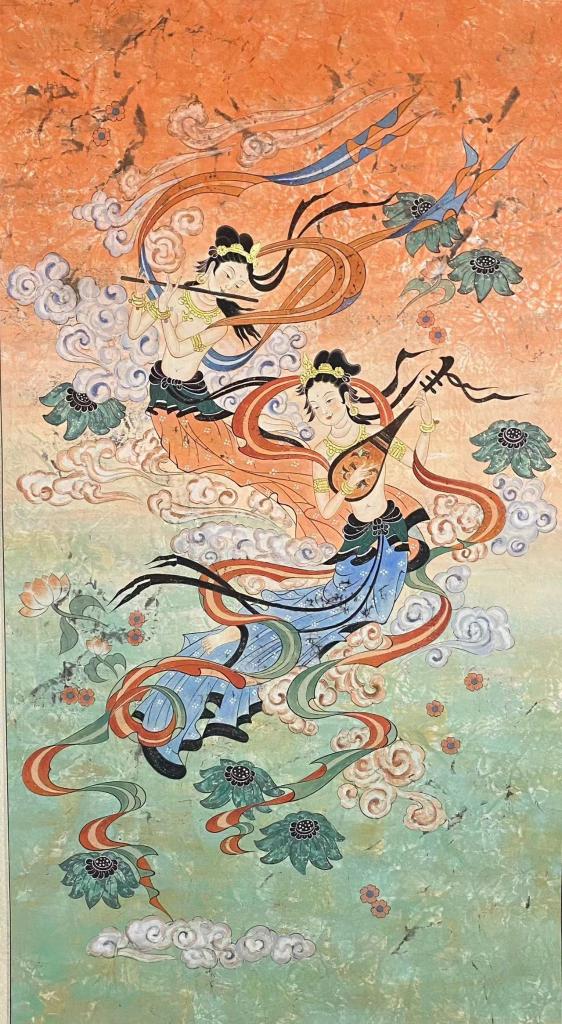 “众多敦煌壁画佳作里,《飞天》最能打动我,画中人物身姿轻盈,体态优美,仿佛在空中翩翩起舞。象征着人类对自由和超越的追求,代表着一种积极向上、勇往直前的精神力量。”张平安说。