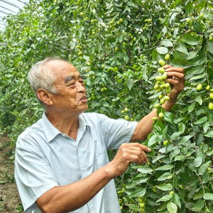 为让枣创造出更多价值,乐陵人想了许多办法。秋雨绵绵,是收获红枣的大敌。在乐陵双新双零精品示范园与南部生态区科技种植示范基地,农技人员经过多年优选,已培育傲雪、金丝4号等良种,较一般品种晚熟50天左右,能有效避开秋雨季。同时,枣树经过矮化,更适合商品化种植。