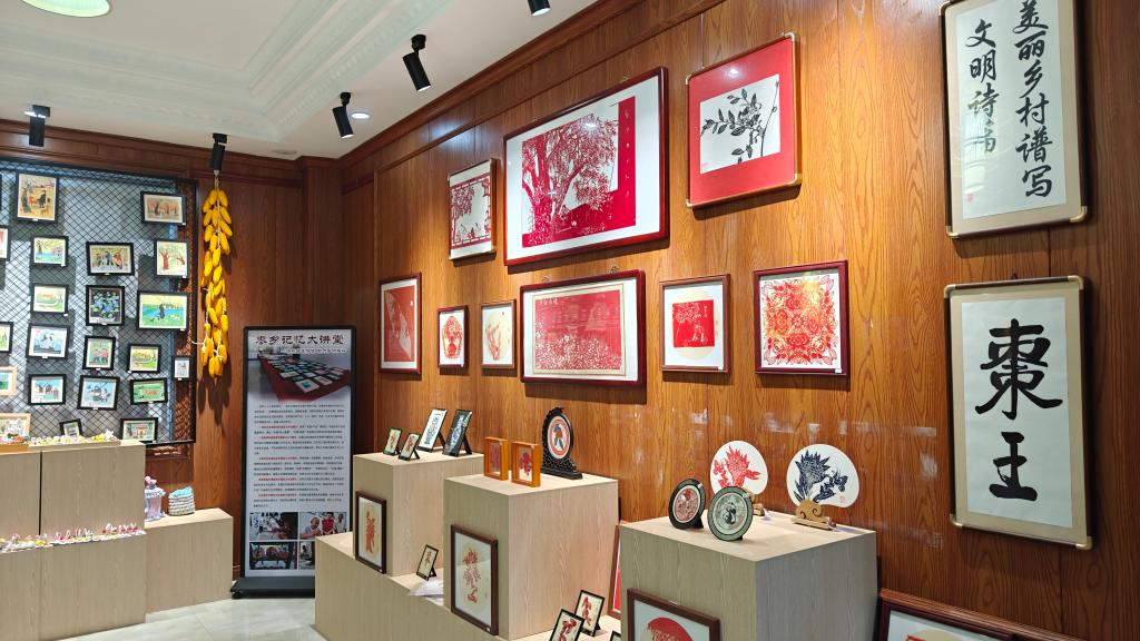 在乐陵市朱集镇幽境红枣合作联社展厅,陈列着当地群众创作的一系列以枣为主题的文创产品。新华社记者 萧海川 摄