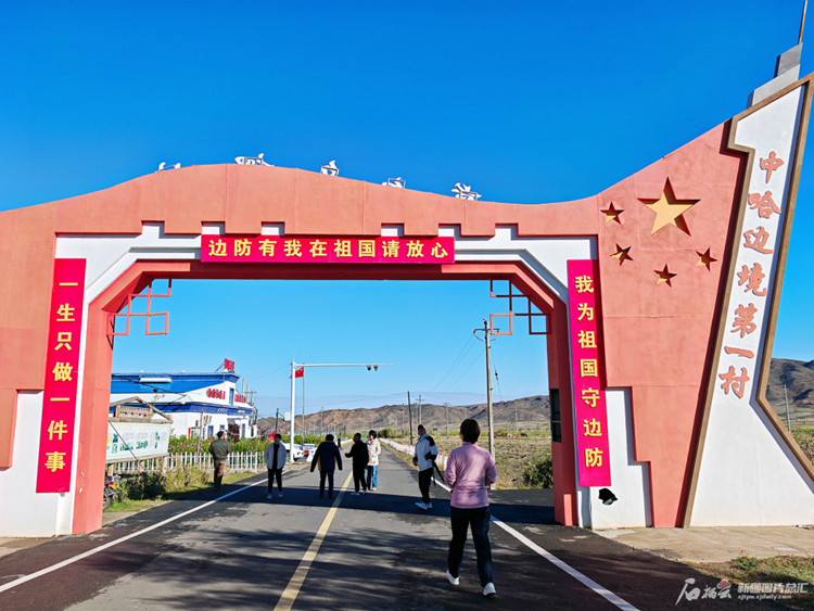 走进“中哈边境第一村”吉木乃镇萨尔乌楞村,风光旖旎,一派祥和景象。村庄院墙上的戍边故事彩绘生动形象,公路两旁,村民们用石头和木桩堆砌起一处处“精神园地”,看着木牌上的字,耳畔仿佛响起动人旋律,“我家住在界河边,祖国母亲在心间,种田放牧护国土,世世代代守边关”。