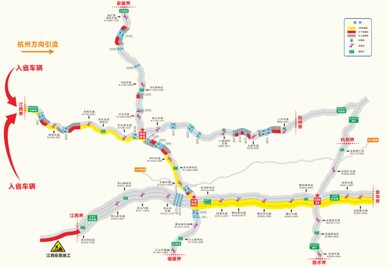 2022年10月,G60沪昆高速衢州段八车道通车运行,而与之相连接的江西梨温高速仍处于改扩建阶段,导致衢州高速通行能力受阻。为此,浙江省交通集团高速公路衢州管理中心积极应对,突破传统封道分流模式,创造性、系统性地打造衢州高速大流量“Z字型”保安全保畅通路线,有效盘活路网交通资源。