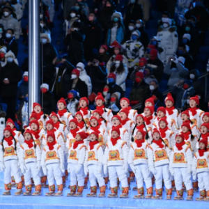 2022年2月4日晚,第二十四届冬季奥林匹克运动会开幕式在北京国家体育场举行。这是“马兰花合唱团”用希腊语在开幕式上歌唱。新华社记者 李尕 摄