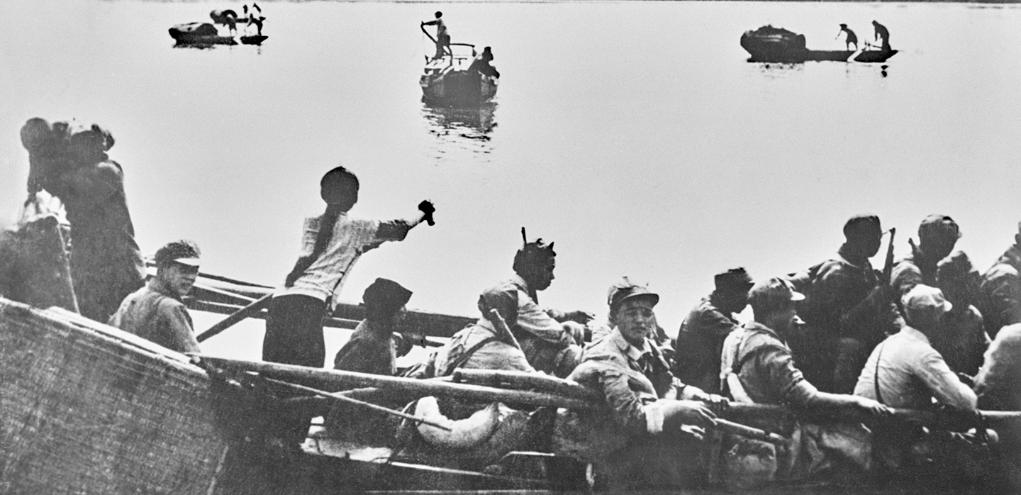 1949年4月,人民解放军百万雄师发起渡江战役,一张珍贵的照片记录下这一历史性时刻:一艘满载解放军战士的木船上,梳着大辫子的姑娘撑船向对岸奋力划去,她的背影定格成美丽瞬间……