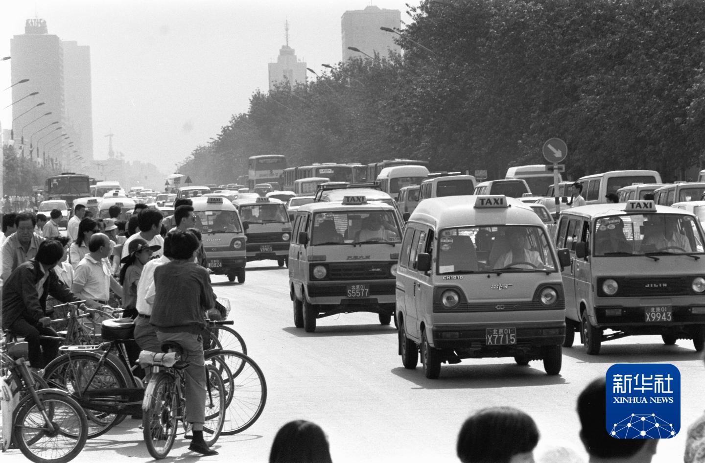 1993年,“面的”行驶在北京街头。