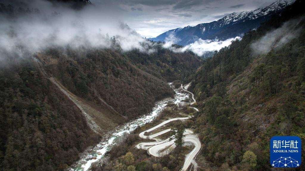 2017年3月30日拍摄的西藏墨脱公路。2013年10月31日,西藏墨脱公路正式通车,标志着我国实现了“县县通公路”的目标。