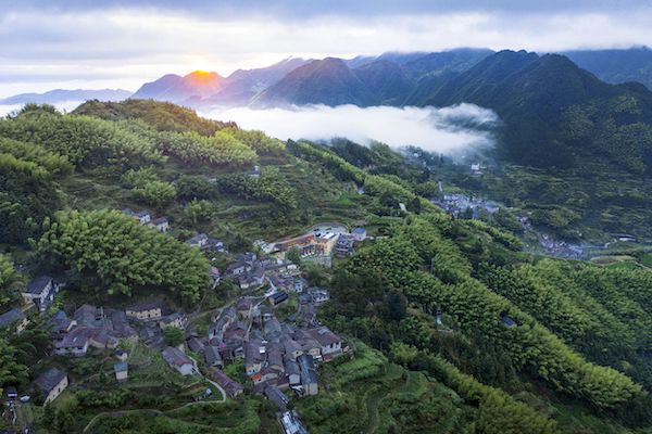 松阳县四都乡陈家铺村坐落于海拔850余米的悬崖峭壁上,被梯田、树林、山峦簇拥包围,因为地处山谷,且和外界隔绝,村中一年中有三分之一的时间云雾缭绕,形成了独特的“崖居”奇观,成为全国各地游客的热门打卡地。