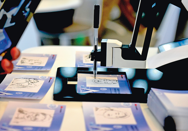 2024世界人工智能大会上展出的智能素描设备。该设备可通过现场拍摄画出素描图(2024年7月6日摄) 黄晓勇摄/本刊