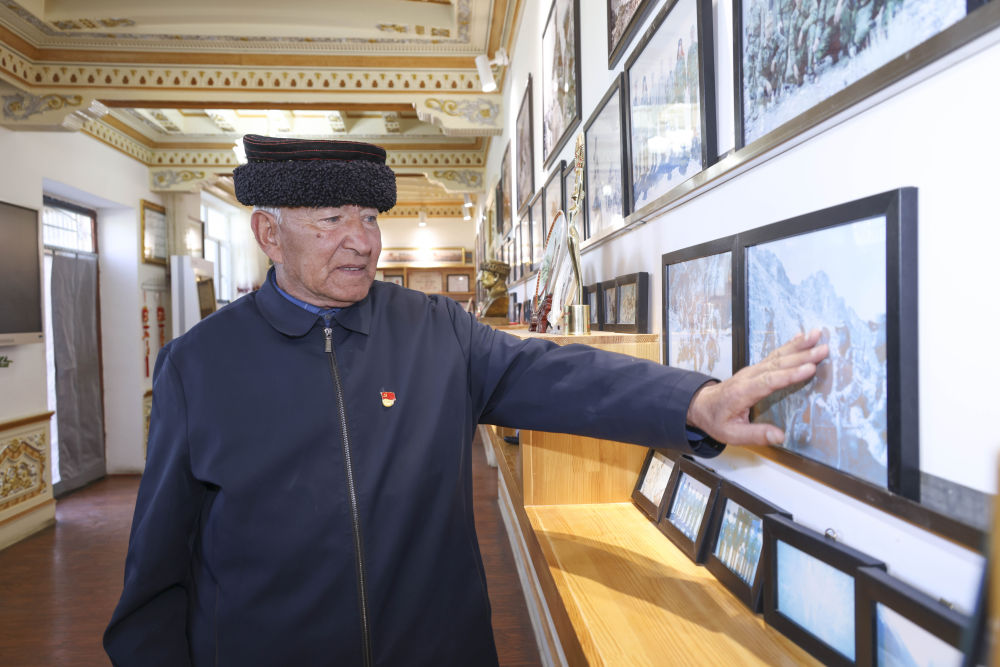 2024年9月15日,在新疆塔什库尔干塔吉克自治县提孜那甫乡,巴依卡·凯力迪别克在家中讲述护边往事。新华社发(姬文志 摄)