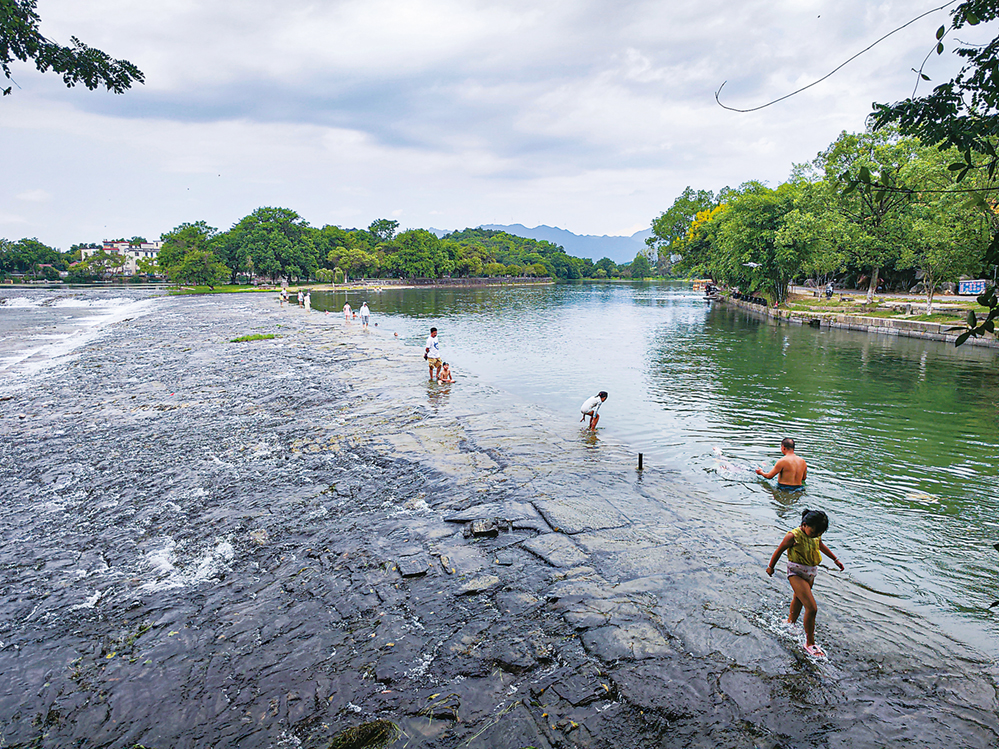 人们在灵渠周围戏水玩耍。本组图片均由新华社记者 韩松 摄