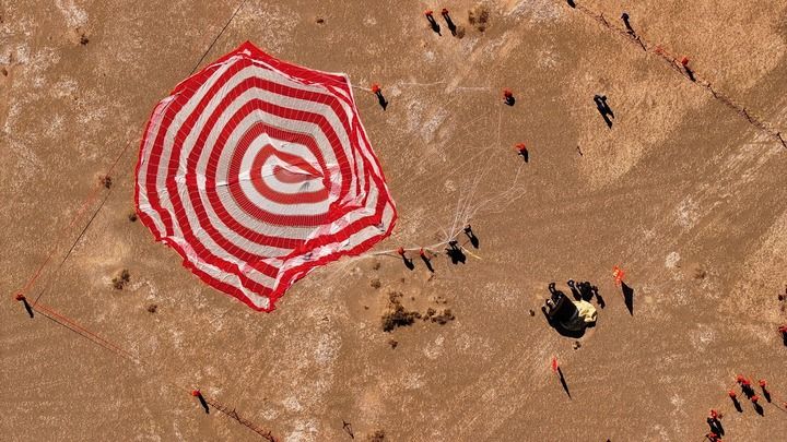 2024年10月11日10时39分,我国在东风着陆场成功回收首颗可重复使用返回式技术试验卫星。新华社发(王衡摄)