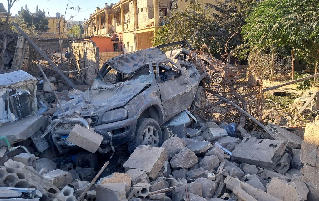 这是10月29日在黎巴嫩贝卡谷地拍摄的在以色列空袭中损毁的汽车。新华社发(马希尔·卡马尔摄)