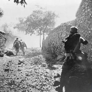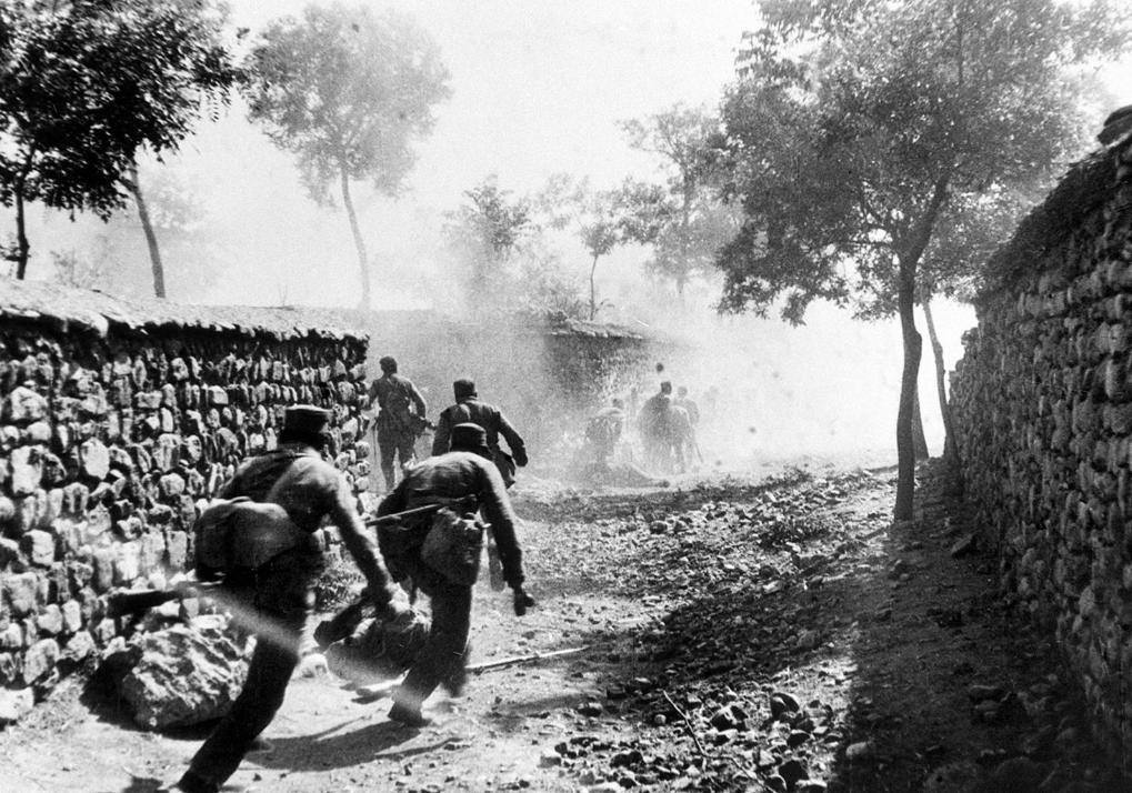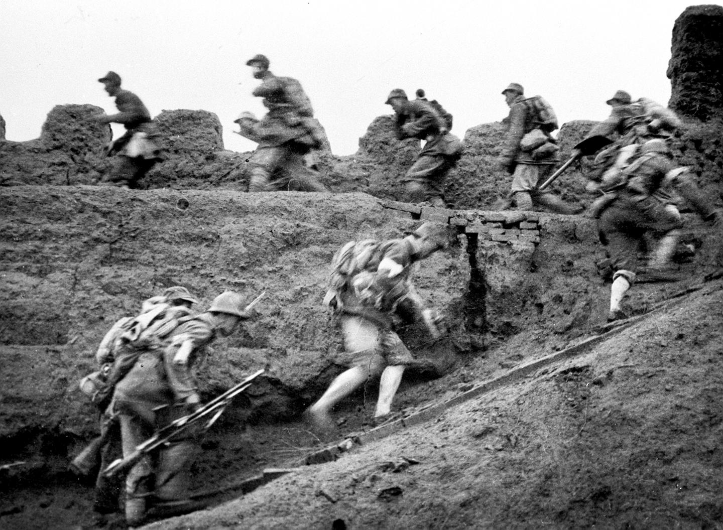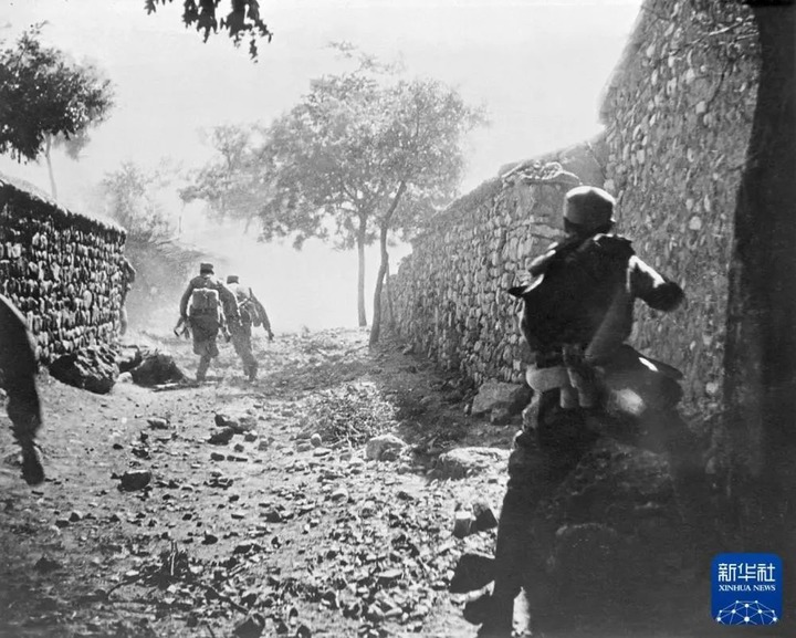1948年6月,解放军战士冒着枪林弹雨猛扑敌阵。新华社记者袁苓摄