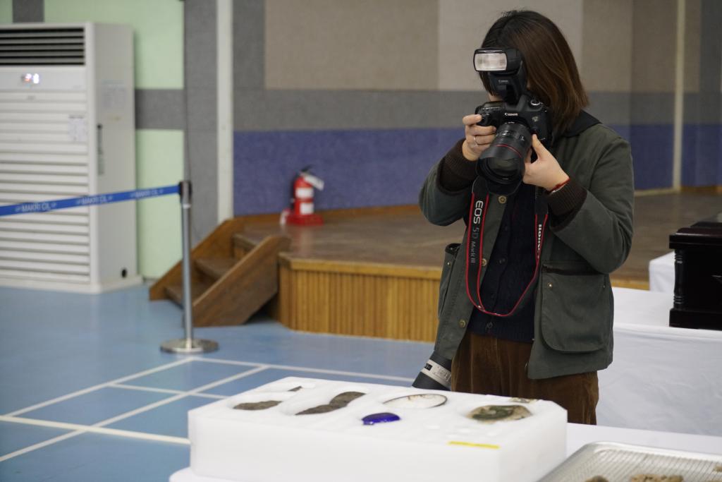 2023年11月22日,在韩中国志愿军烈士遗骸装殓仪式现场,新华社记者姚琪琳在拍摄。