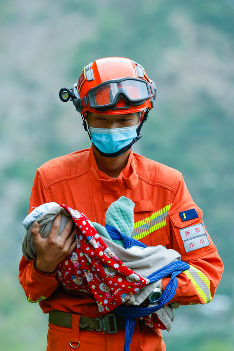 “2022年9月6日,我坐在前往泸定县得妥镇的橡皮艇上,船至码头,人们依次上岸,我忽然瞥见一个消防队员接过一名婴儿,小心翼翼地抱着向大路走去。尽管此时我已累得连话都不想说,但一看到这个场景,我瞬间被感动了。”
