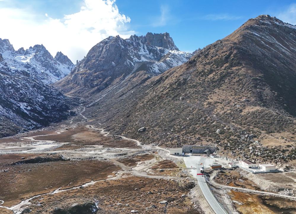 这是11月1日拍摄的317国道雀儿山隧道口(无人机照片)。新华社记者 王曦 摄