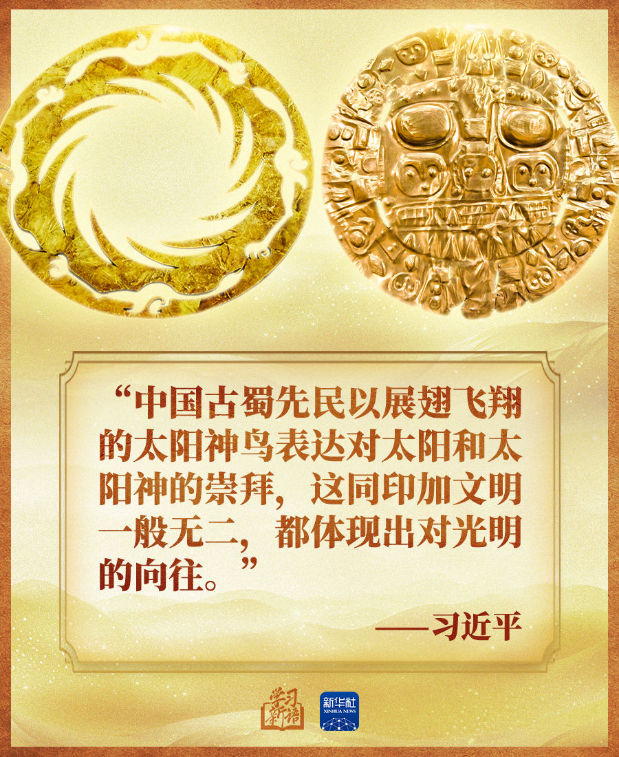 “中外考古学界认为,中华文明和美洲文明实际上是同一祖先的后代在不同时代、不同地点的产物。文明的智慧让我们理念相近、心灵相通。”